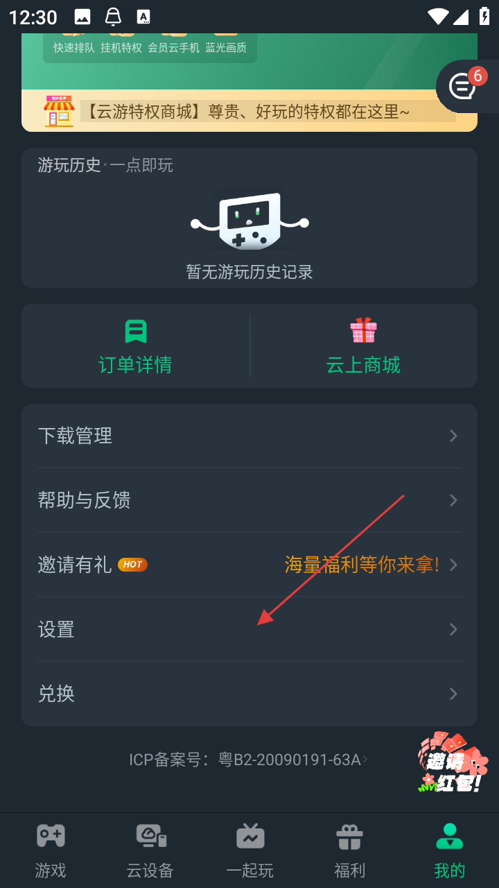 1、在网易云游戏页面,点击右下角【我的】选项,进入个人相关页面,可查看游玩历史等信息。