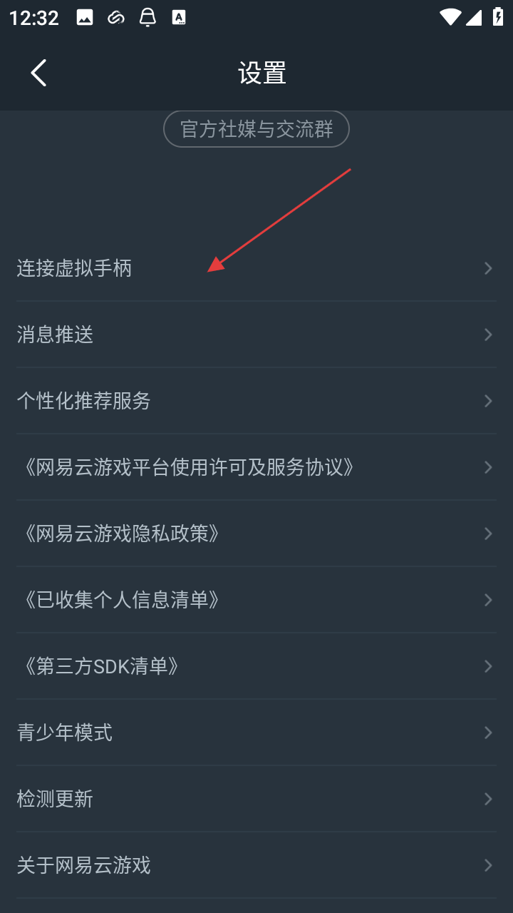 3、在设置界面,找到并点击【连接虚拟手柄】选项,进入连接虚拟手柄的设置页面。