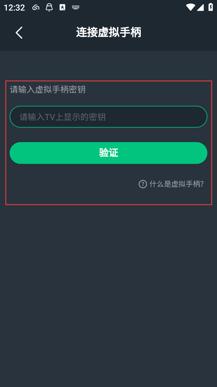 4、在连接虚拟手柄页面,输入TV上显示的密钥,然后点击【验证】按钮,完成虚拟手柄的连接操作。