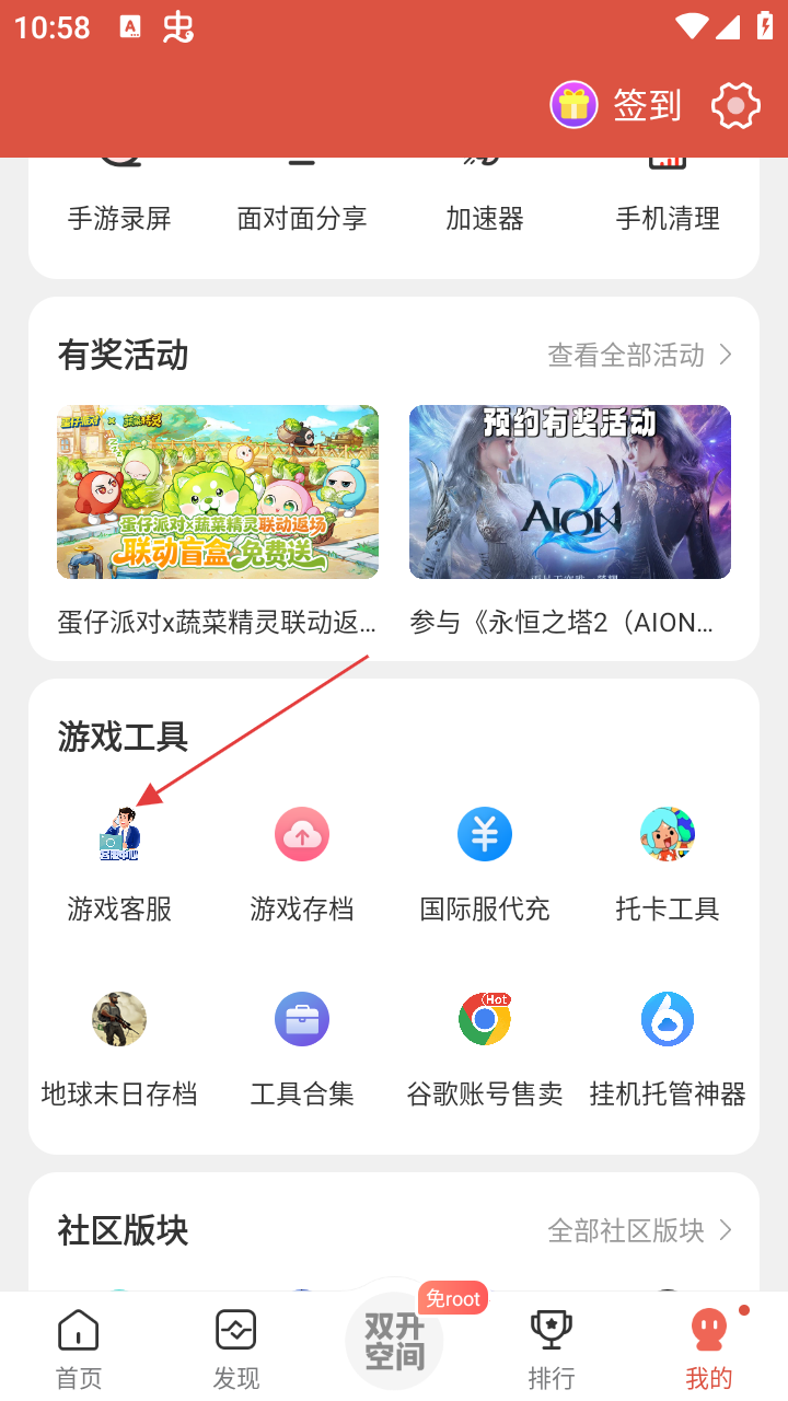 2、进入个人页面后,若要联系游戏客服,点击【游戏客服】图标,进入在线客服页面。