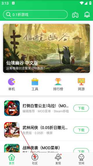 1、打开葫芦侠三楼进入首页,点击底部【社区】进入社区界面。