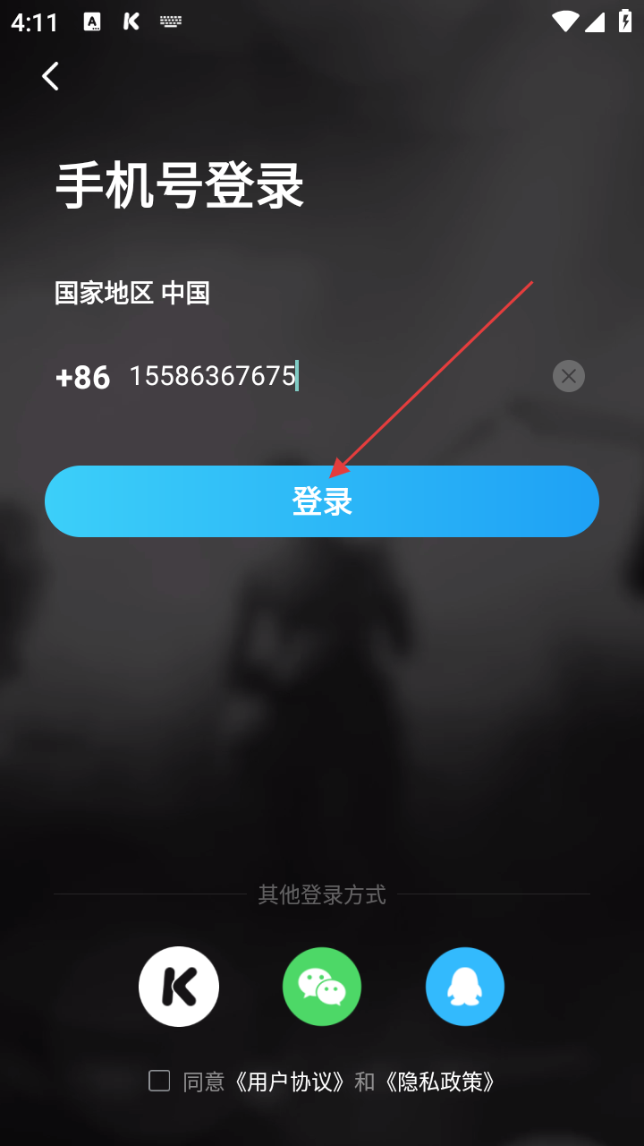 4、输入手机号码后,点击【登录】按钮,即可完成手机号登录流程。