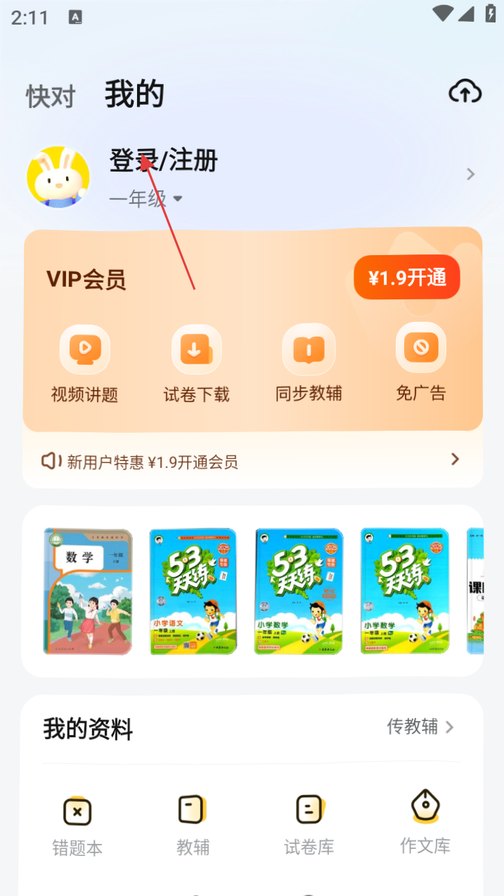 2、在【我的】页面,若要登录或注册账号,点击【登录/注册】选项。