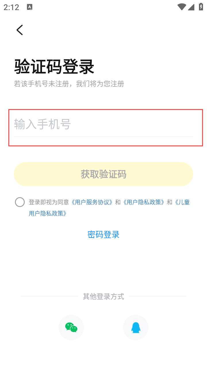3、进入验证码登录页面,在【输入手机号】输入框中填写自己的手机号。