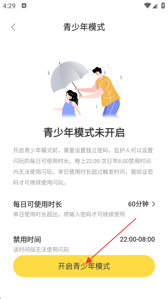 4、在青少年模式相关页面,若要开启该模式,点击【开启青少年模式】,按照提示完成青少年模式开启操作。