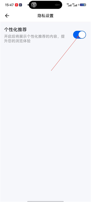 4、在隐私设置页面,可开启/关闭“个性化推荐”开关,调整内容推荐的个性化程度,优化浏览体验。