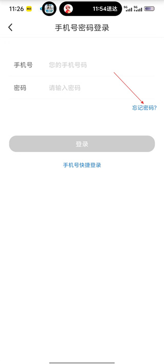 3、在手机号密码登录界面,若忘记密码,点击【忘记密码?】,可进入忘记密码重置界面。