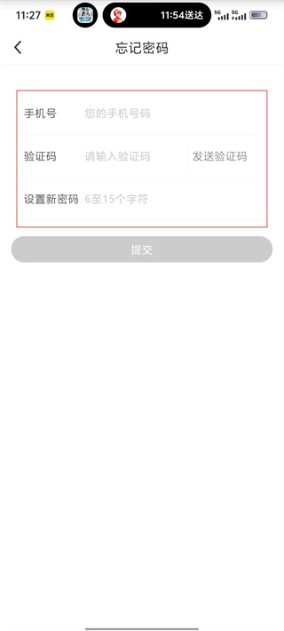 4、在忘记密码界面,输入手机号、验证码并设置新密码后,点击【提交】,即可完成密码重置操作。