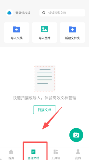 2、点击“扫描文档”按钮,快速扫描或导入文档,体验高效管理。