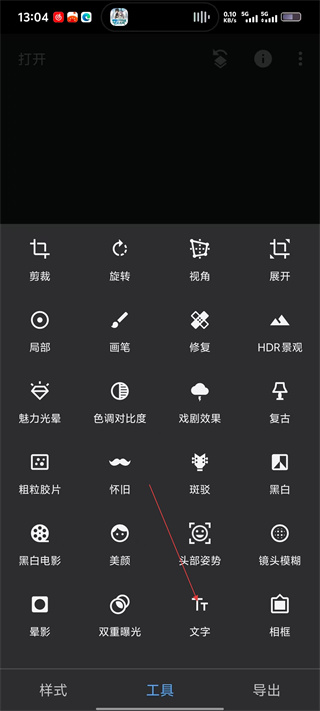 2、在【工具】界面中,选择【文字】功能,可在图片上添加文本内容,还能调整文本样式、字体等参数。