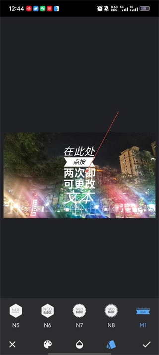 3、添加文本后,点按文本区域两次可修改内容,同时可通过下方样式选项切换文本的展示风格。