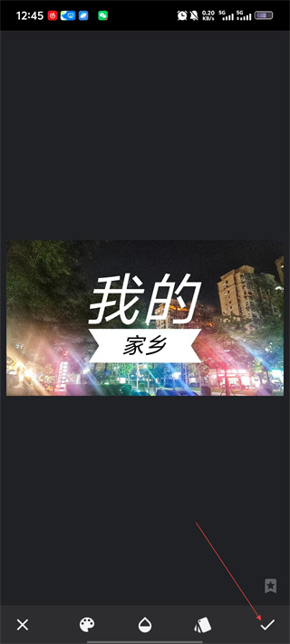 4、修改文本内容后,点击界面右下角的对勾按钮,即可确认文本编辑,完成图片的文字添加操作。