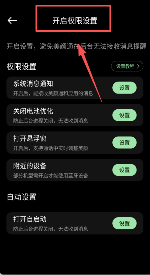 3、按提示依次打开通知、悬浮窗等权限,防止后台被杀保证美颜持续在线。