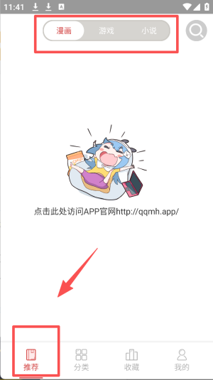 1、选择分类,点击底部导航栏的“推荐”图标,浏览不同分类。