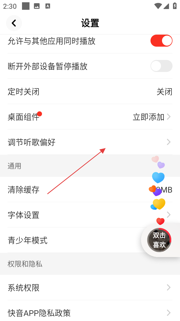 3、在设置页面,点击【调节听歌偏好】选项,进入我的听歌偏好页面。