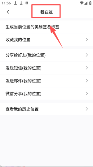 3、分享位置信息,点击“我在这”生成奥维签名标签,分享当前位置。