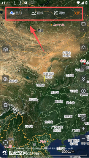 2、使用绘图工具,点击顶部的“画线”按钮,开始在地图上绘制线条。