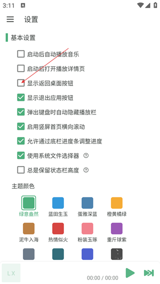 3、在【设置】界面的基本设置中,可勾选【显示返回桌面按钮】选项,实现软件界面显示返回桌面按钮的功能。