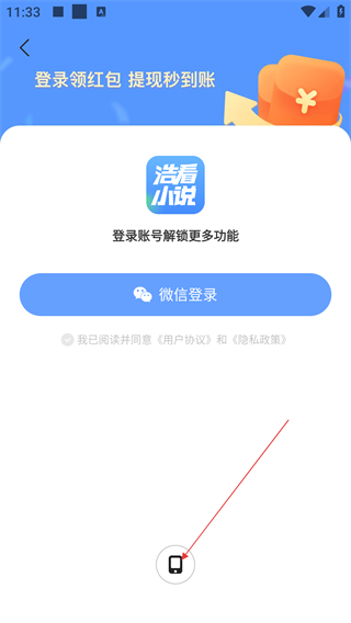 3、在登录选择界面,点击手机号登录图标,进入手机号登录界面。