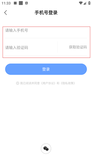4、在手机号登录界面,输入手机号和验证码后,勾选同意相关协议,点击【登录】即可完成手机号登录操作。