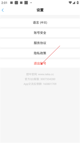 3、在设置界面中,选择“退出账号”选项,可退出当前登录的账号,返回登录和注册界面。