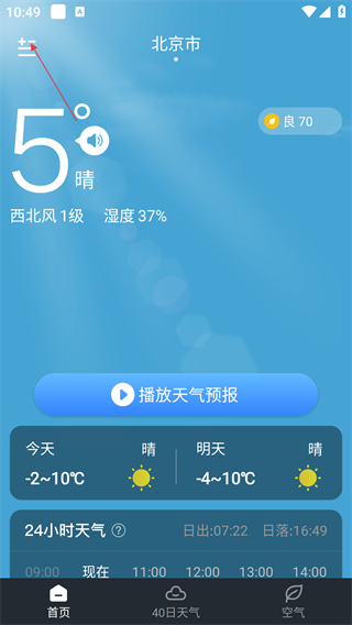 1、在APP主界面,点击左上角的菜单按钮,进入城市列表页面。