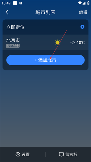 2、在城市列表页面,点击【+添加城市】按钮,进入添加城市界面。