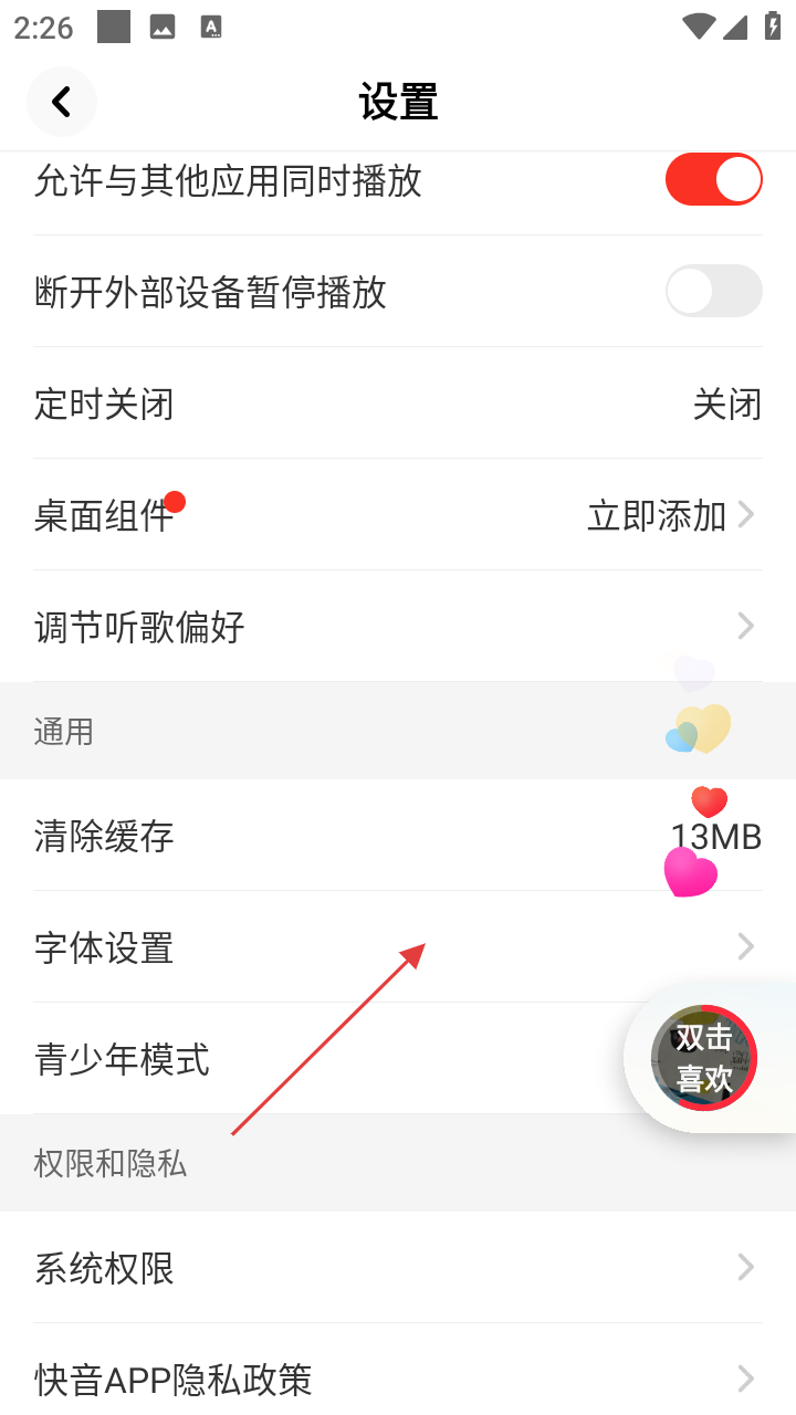 3、在设置页面,点击【字体设置】选项,进入字体设置页面。