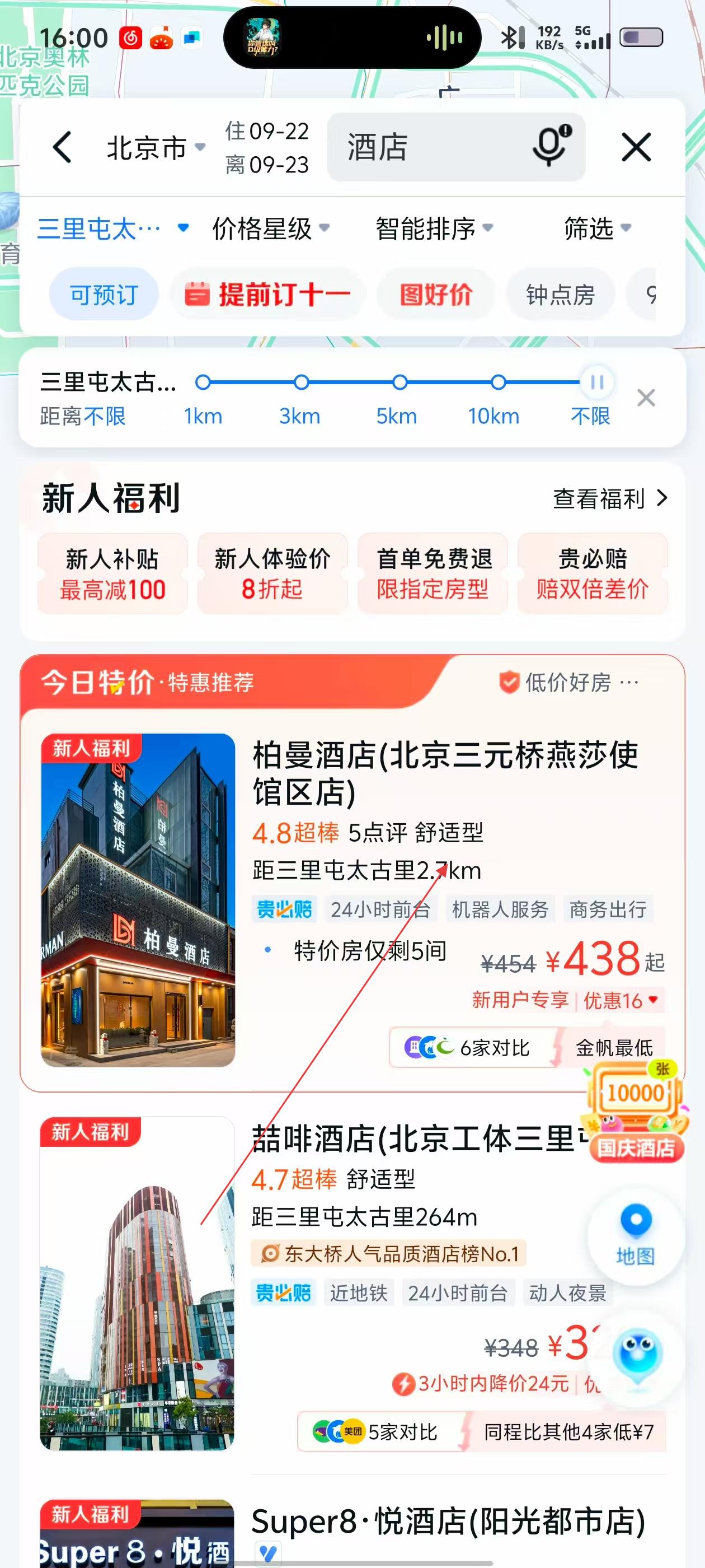 3、在搜索结果页面,浏览推荐的酒店列表,选择感兴趣的酒店,点击进入酒店详情页。