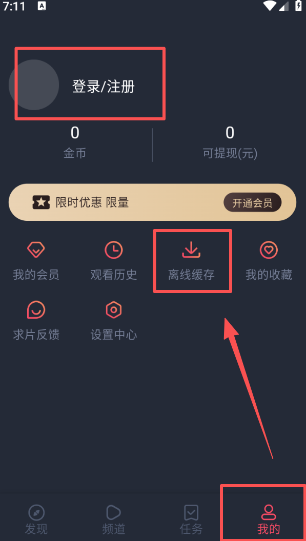 4、点击 “我的” 进入个人页面,完成登录后,可在 “离线缓存” 里查看已下载的内容,管理观看相关信息。