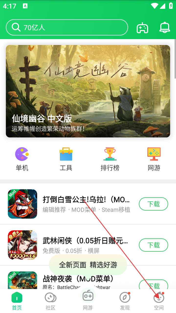 1、进入葫芦侠首页,点击底部【空间】选项,可进入个人空间页面。