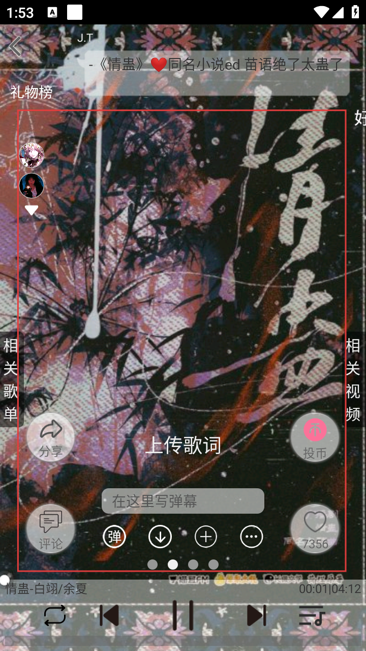 4、点击列表中想听的【情蛊】相关内容,即可进入播放页面,进行听歌等操作。