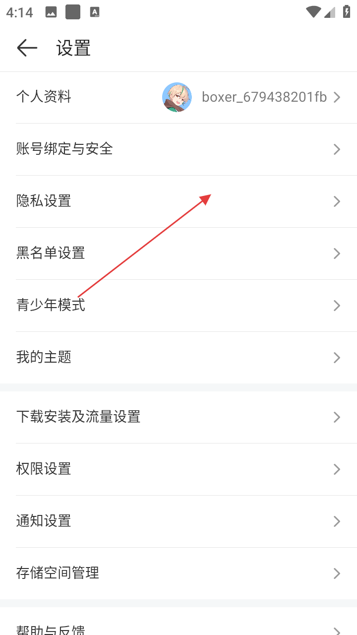 3、在设置界面,找到【隐私设置】选项并点击,进入隐私设置页面。