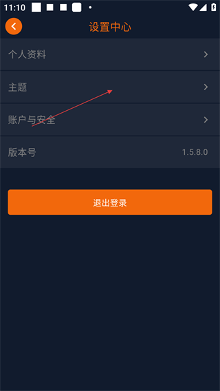 3、在设置中心页面,可管理个人资料、账户安全等,点击【主题】选项,进入主题设置界面。