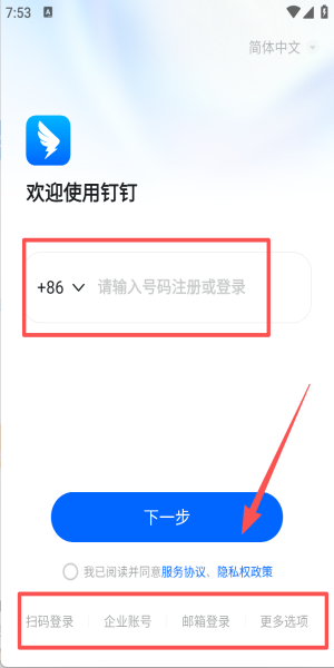 2、输入手机号点击“下一步”,即可快速注册或登录钉钉个人账号。
