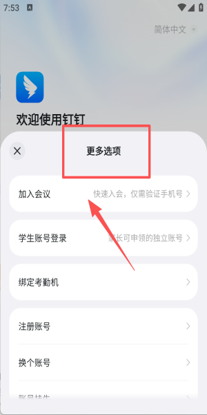 3、在“更多选项”中选择“注册账号”,也可扫码或邮箱登录绑定企业身份。