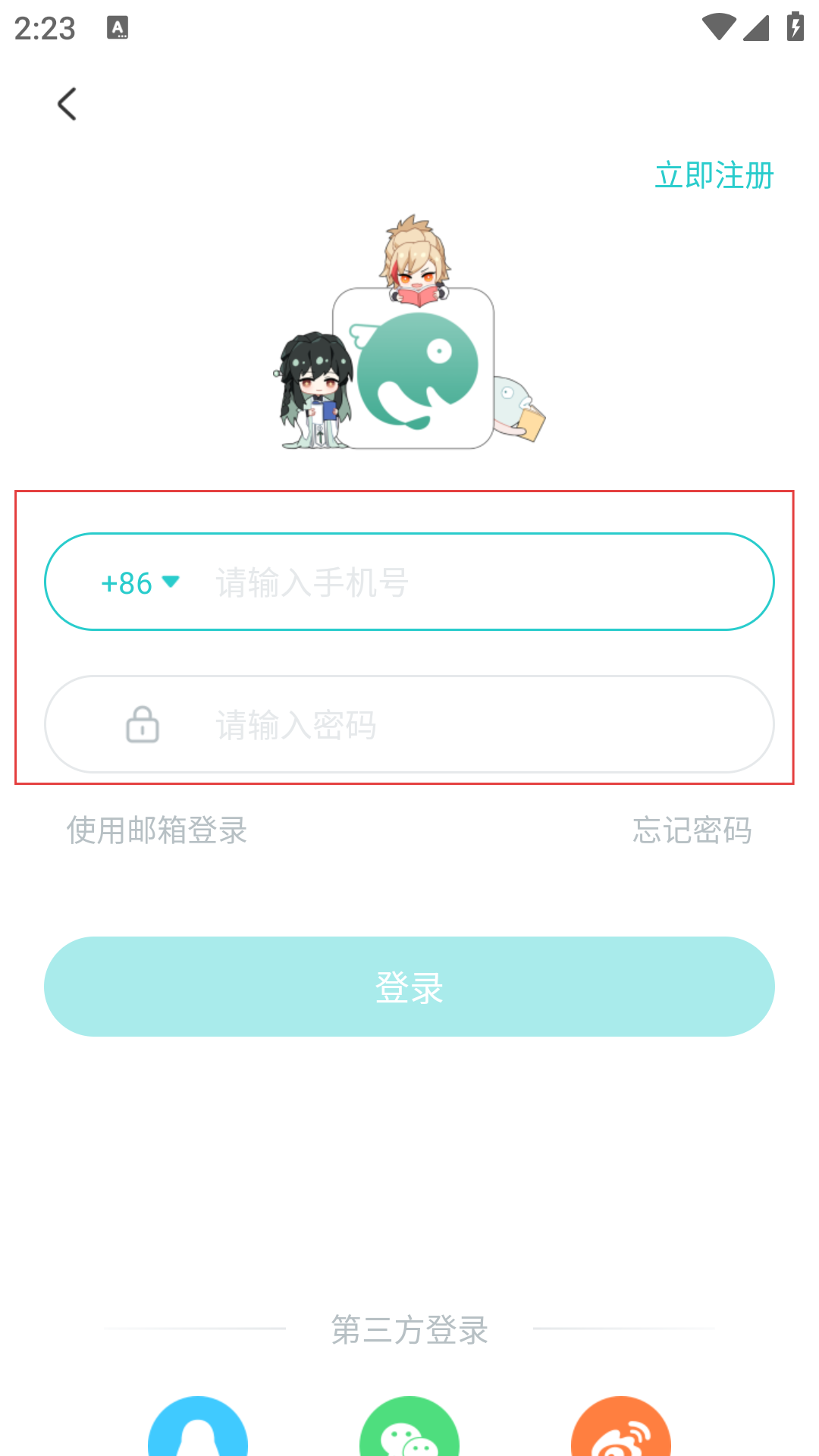 3、在登录界面输入手机号和密码,也可选择第三方登录方式。
