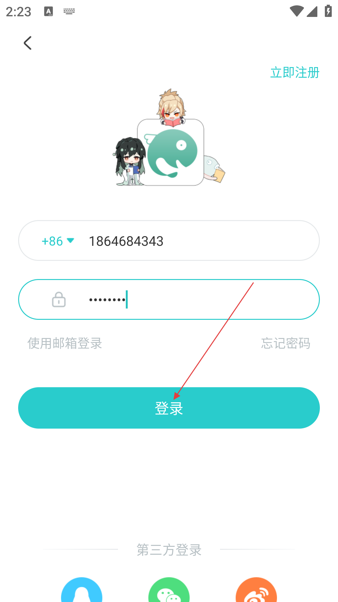 4、填写完手机号和密码后,点击【登录】按钮完成登录操作。