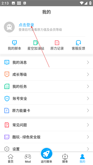 2、进入【我的】页面后,点击【点击登录】选项,可进入登录界面,支持手机号/果盘号登录。