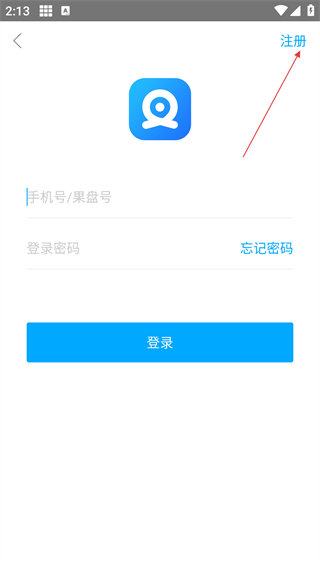 3、进入登录界面,点击右上角【注册】选项,可进入手机号注册页面。