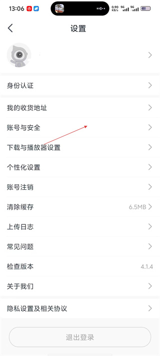 3、在设置页,点击【账号与安全】选项,进入账号安全管理页面。