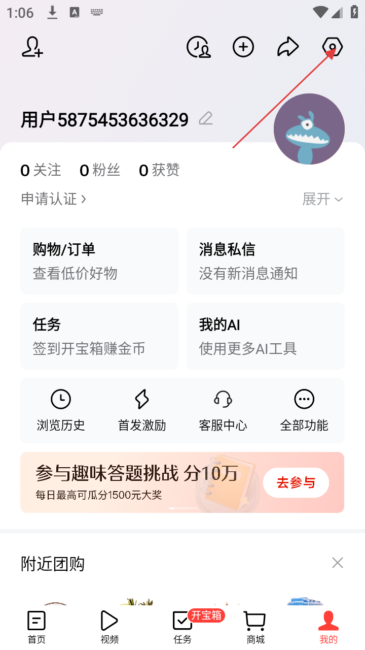 2、进入【我的】页面后,点击右上角设置图标,进入设置界面,可进行各类设置操作。