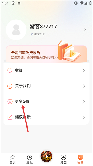 2、在个人中心页面,找到并点击“更多设置”选项,进入应用的设置操作界面。