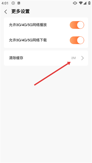 3、在更多设置界面,点击“清除缓存”选项,触发缓存清理的确认弹窗。