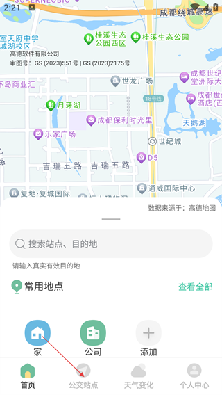 2、在主界面点击底部导航栏的【公交站点】选项,进入公交站点页面。