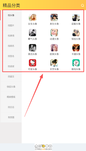 1、打开应用后浏览丰富头像分类,依据喜好选择合适类型,轻松找到既符合自身风格又时尚的头像。