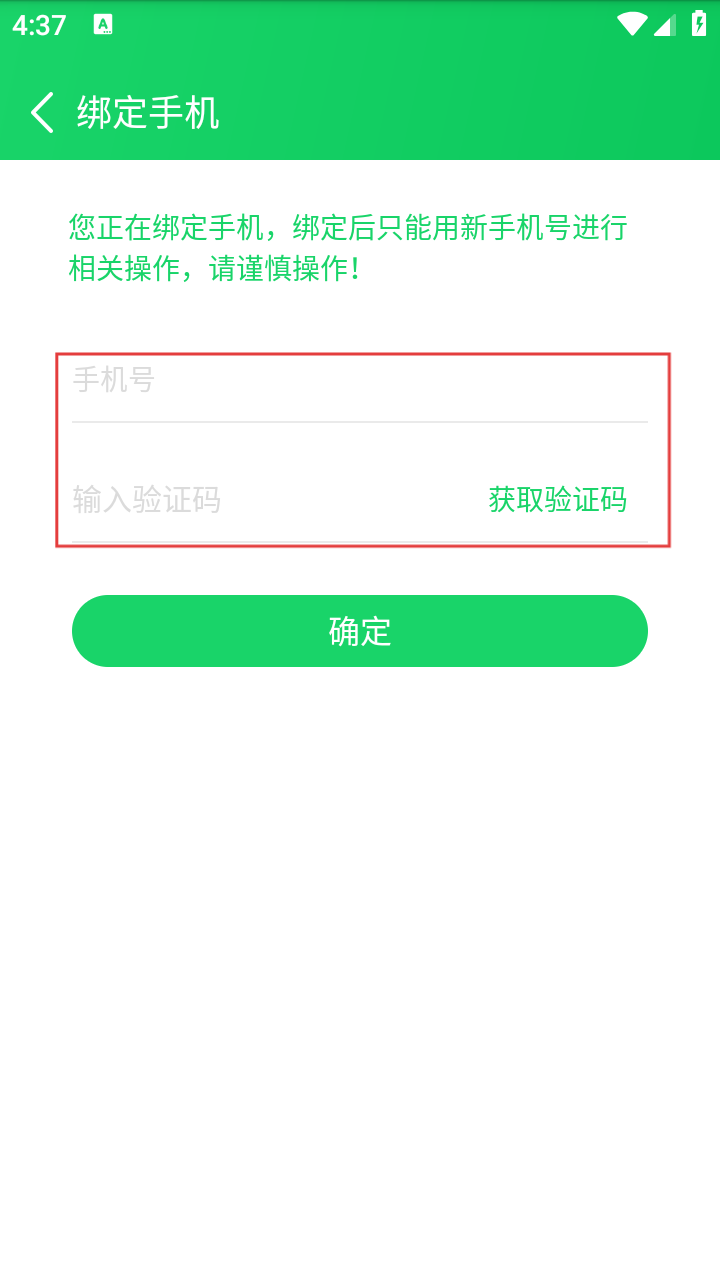 4、在绑定手机页面,输入手机号并获取验证码,填写验证码后点击确定,即可完成手机绑定流程。