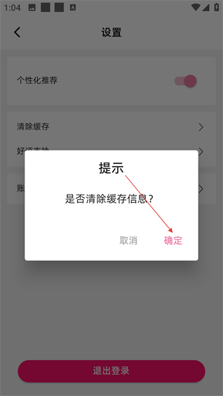3、在设置页面,点击【清除缓存】,将弹出是否清除缓存信息的提示框。