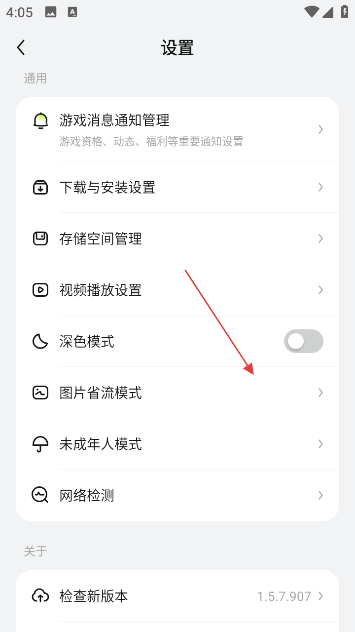 3、进入设置页面,若要设置图片省流相关模式,点击【图片省流模式】选项。