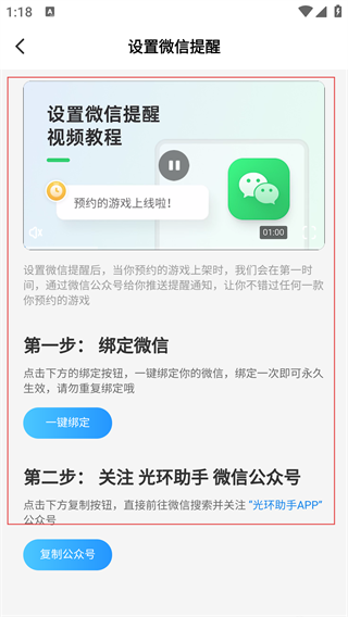 光环助手怎么开启微信提醒